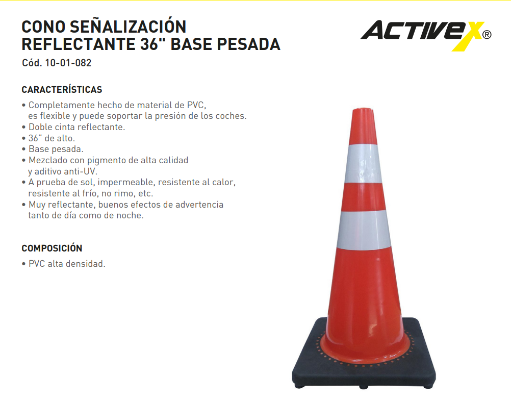 Cono Pp Señalización Reflectante 36 Base Negra