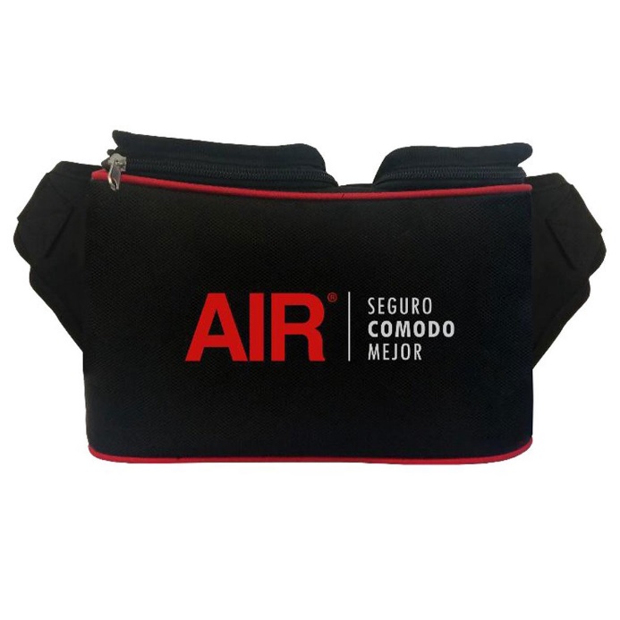 Cuenta además con un material impermeable, con una parte posterior acolchada y con una correa para llevar el Porta Respirador AIR confortablemente en la cintura.