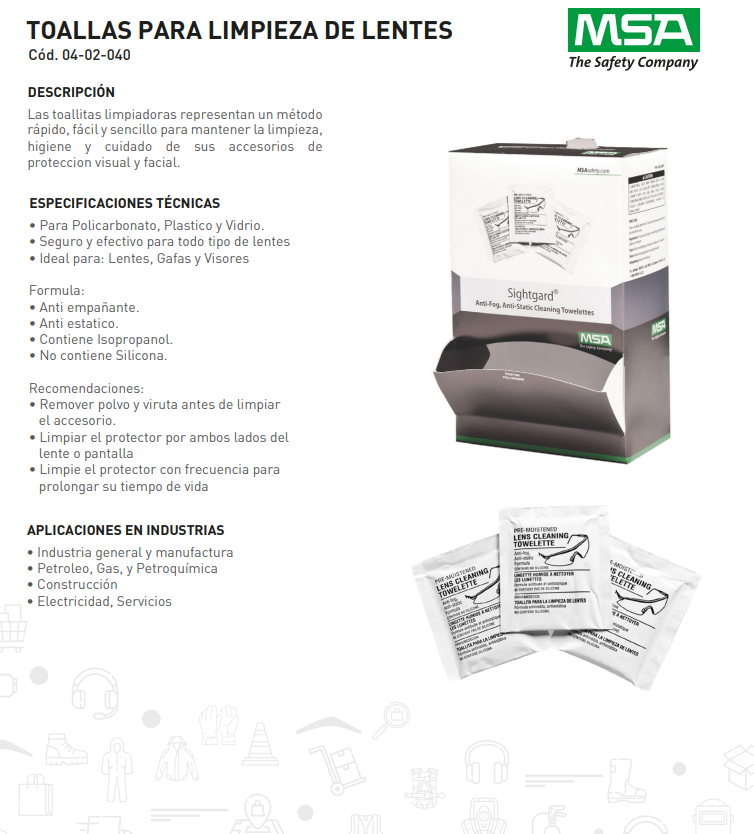 Las increíbles toallitas de limpieza son tu aliado perfecto para mantener una limpieza impecable y un cuidado excepcional de tus lentes y visores. Con su fórmula especial anti empañante y antiestática, garantizan una limpieza segura y efectiva para todo tipo de materiales. No hay mejor opción para prolongar la vida útil de tus accesorios de protección en industrias clave como la manufactura, el petróleo, la construcción y la electricidad. ¡No esperes más y prueba las toallitas que harán la diferencia!